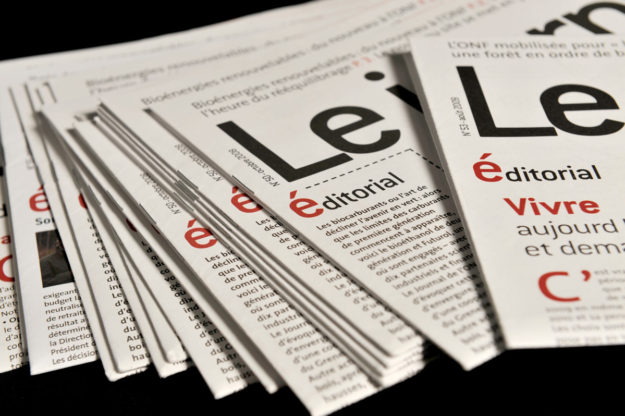 Journal interne Un vrai journal dans le choix du papier et de sa ligne éditoriale. Client: ONF Categorie: Journal Journal interne Le journal du personnel de l’office national des forêts. Un format pratique et efficace ou l’information se découpe en pointillée… Une navigation soft rendu efficace par son système de « faux onglets » en haut…