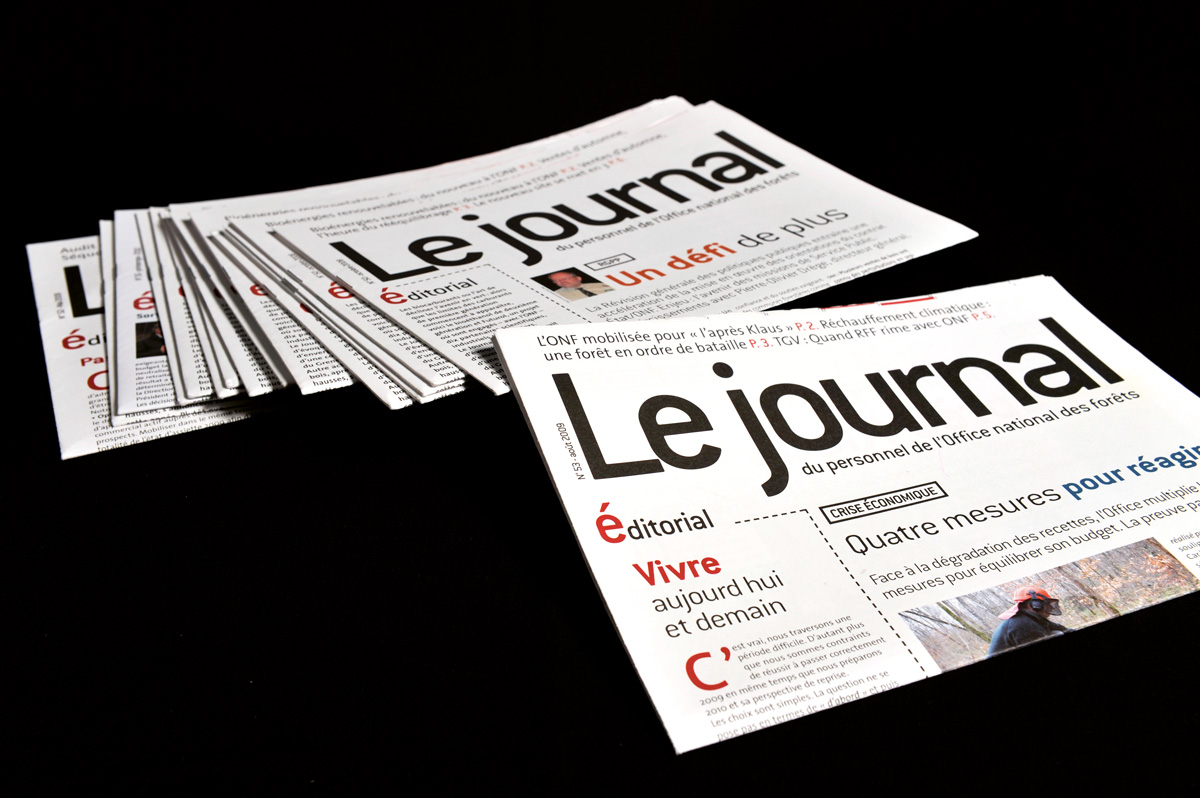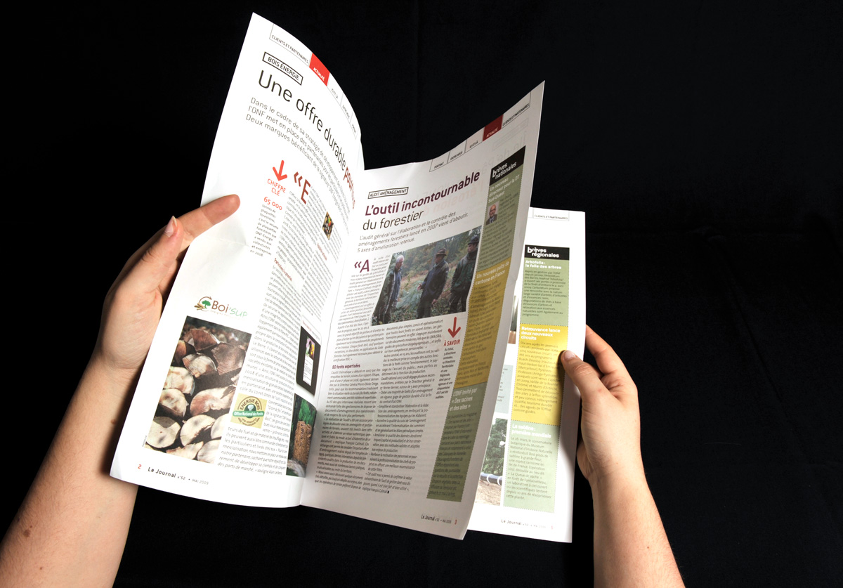Le journal du personnel de l’office national des forêts. Un format pratique et efficace ou l’information se découpe en pointillée… Une navigation soft rendu efficace par son système de « faux onglets » en haut de page.