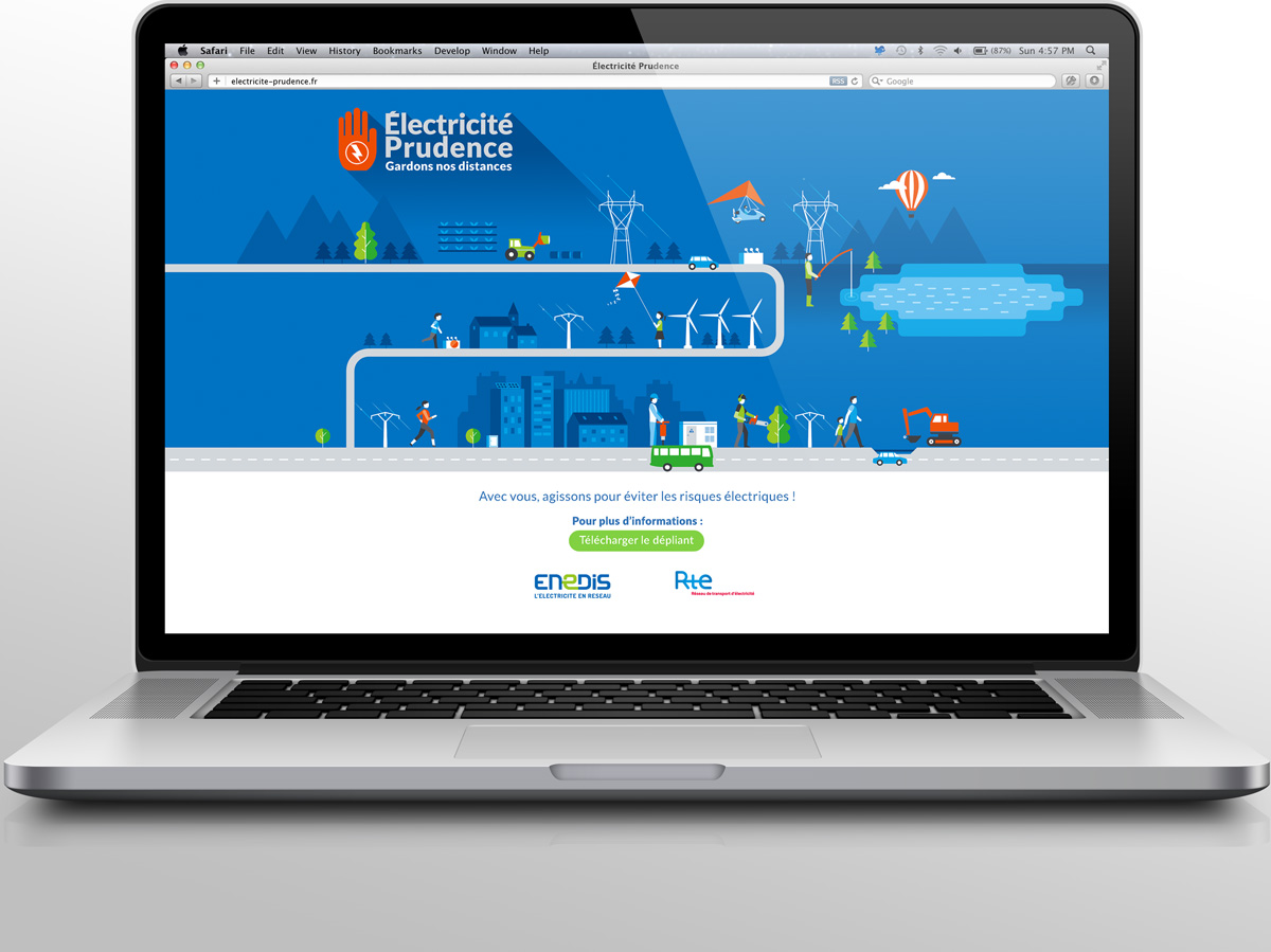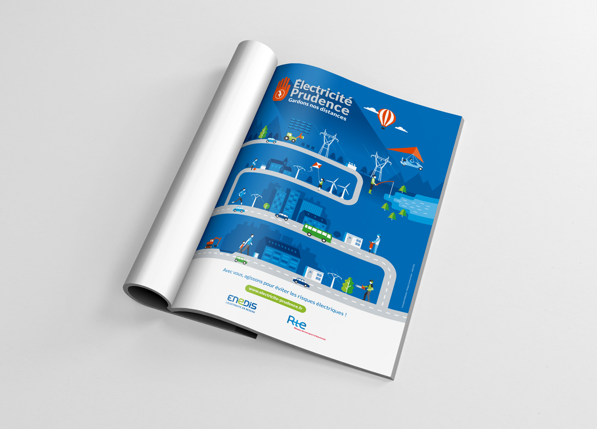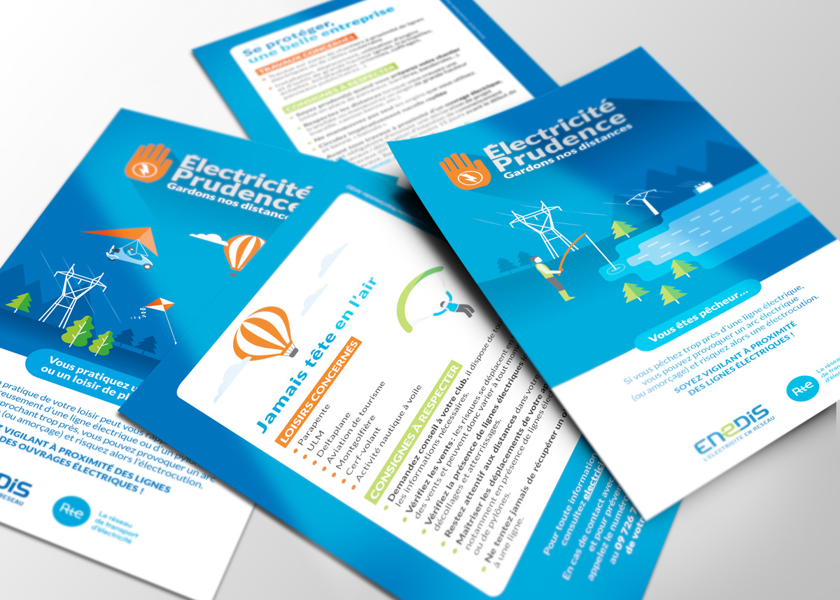 Un ensemble d’outils de communication pour la campagne Électricité Prudence Enedis/RTE, dont des affiches, des kakémonos, un dépliant, une annonce presse, un communiqué de presse, des sticker et une animation web… Une identité forte pour l’ensemble de la campagne offrant un impact et une reconnaissance immédiate.