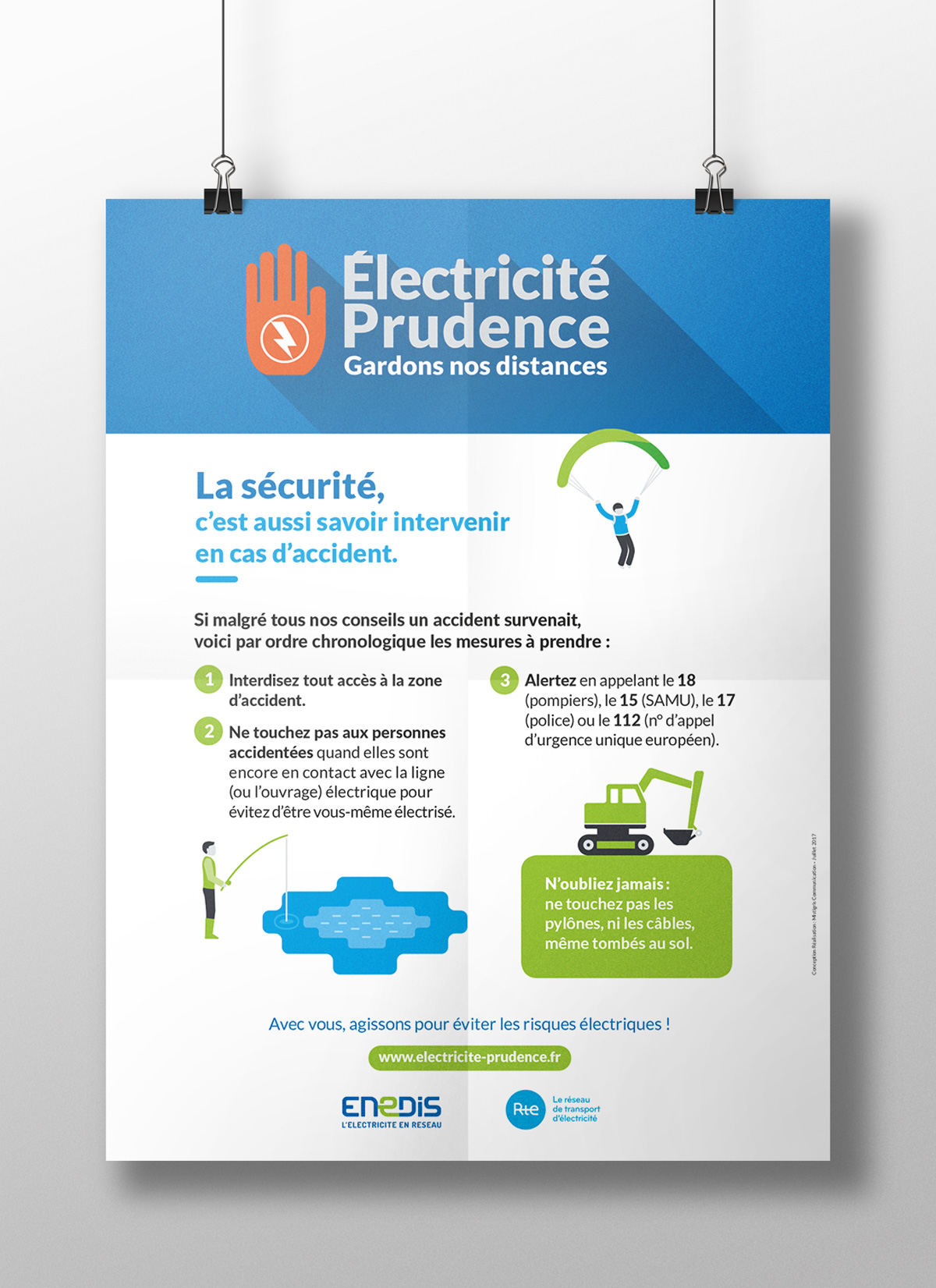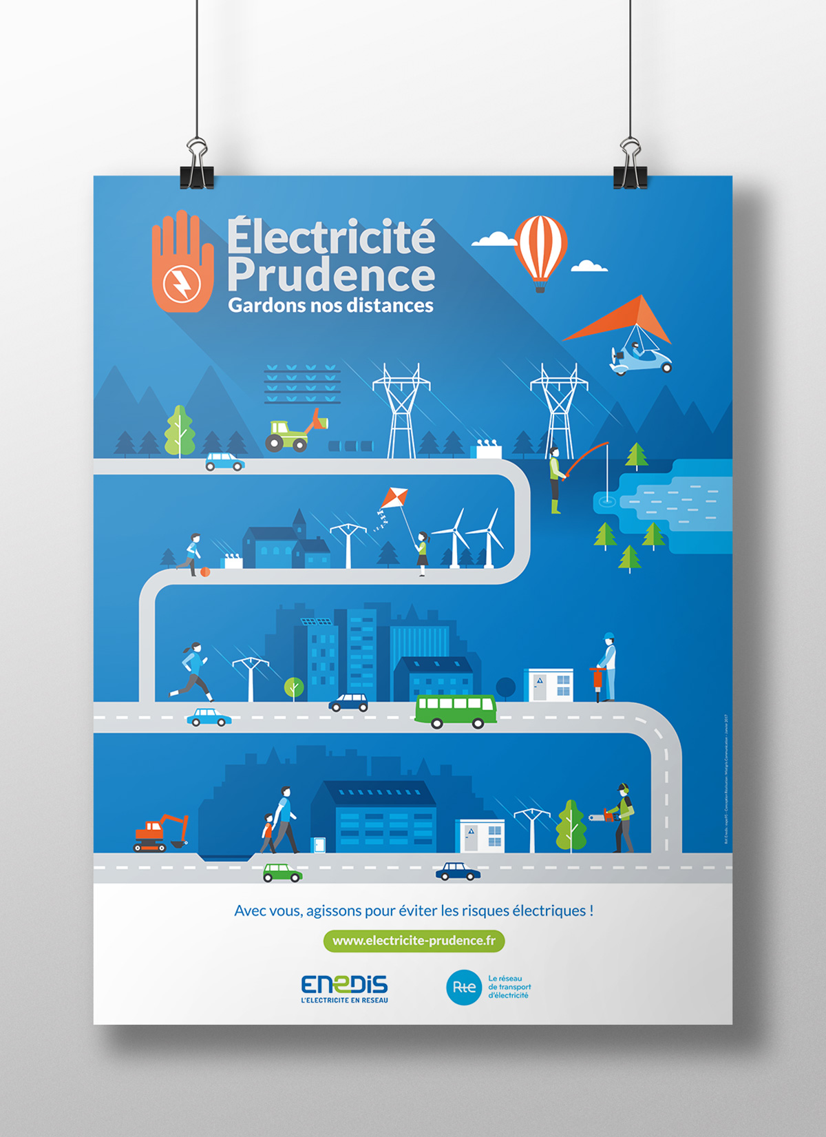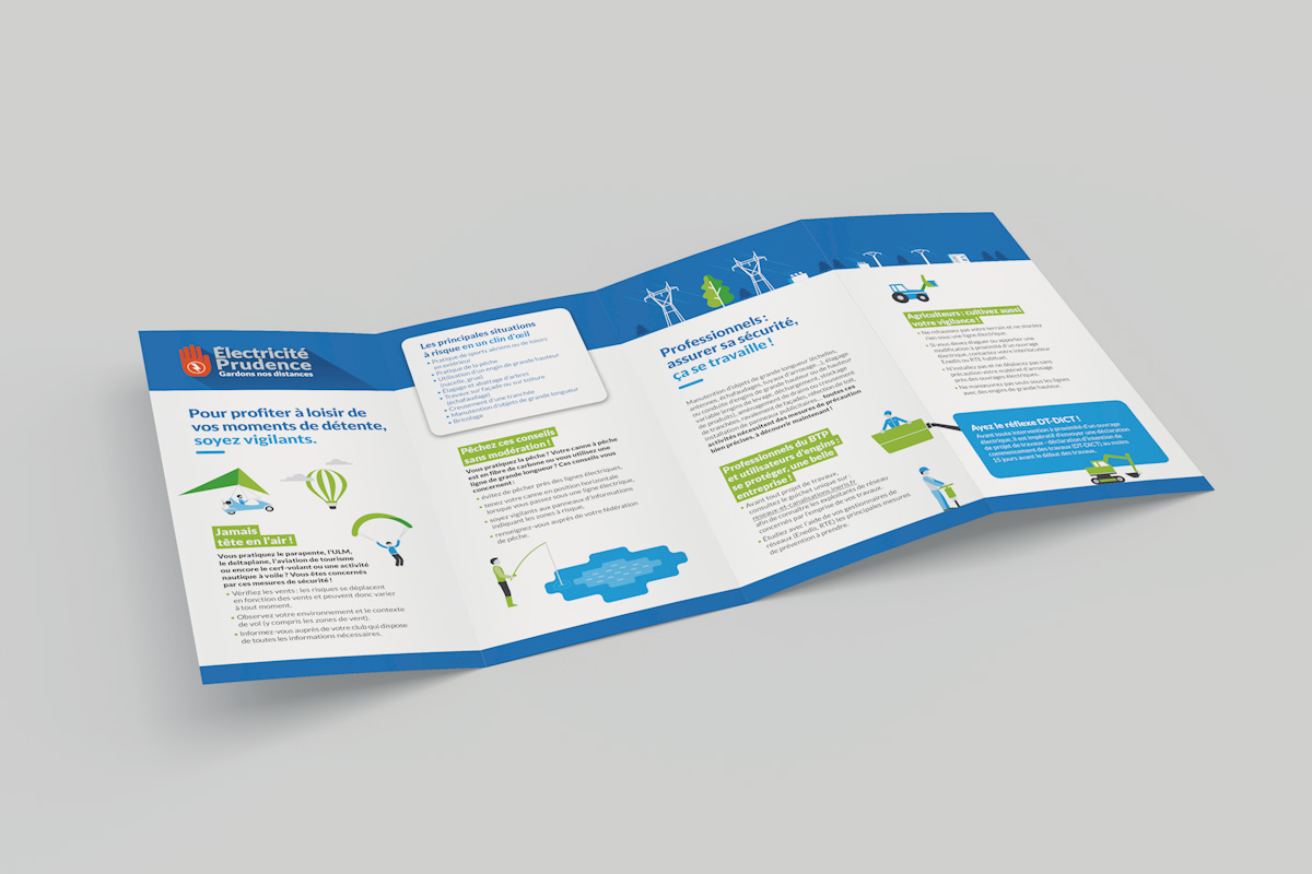 Un ensemble d’outils de communication pour la campagne Électricité Prudence Enedis/RTE, dont des affiches, des kakémonos, un dépliant, une annonce presse, un communiqué de presse, des sticker et une animation web… Une identité forte pour l’ensemble de la campagne offrant un impact et une reconnaissance immédiate.