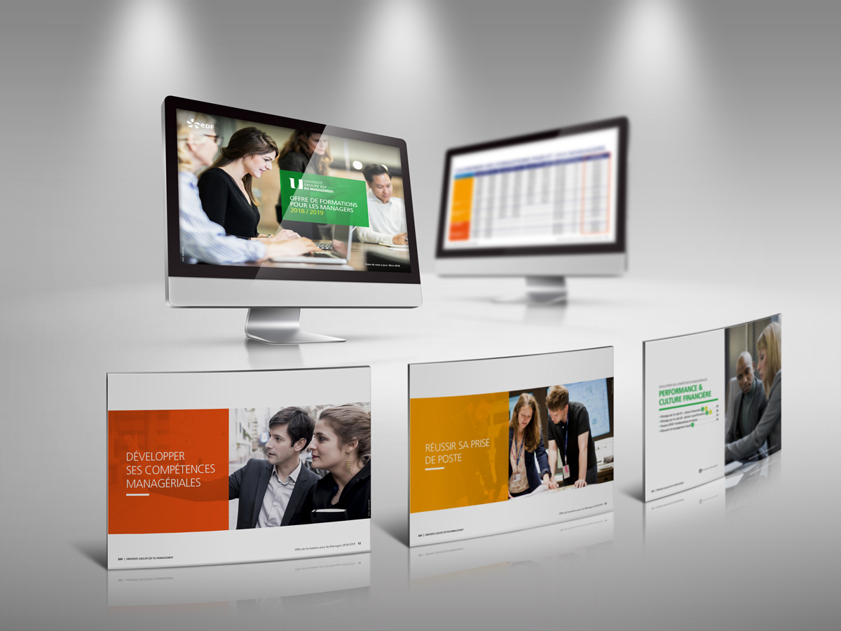 Des publications ambitieuses pour différents catalogues interactifs de formation du groupe EDF.